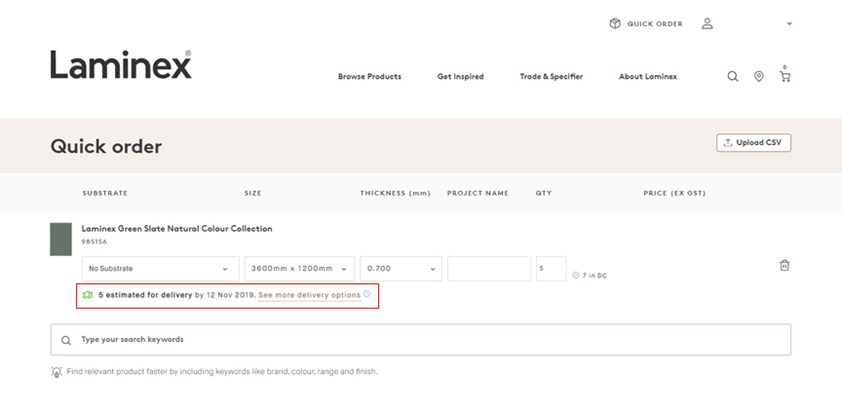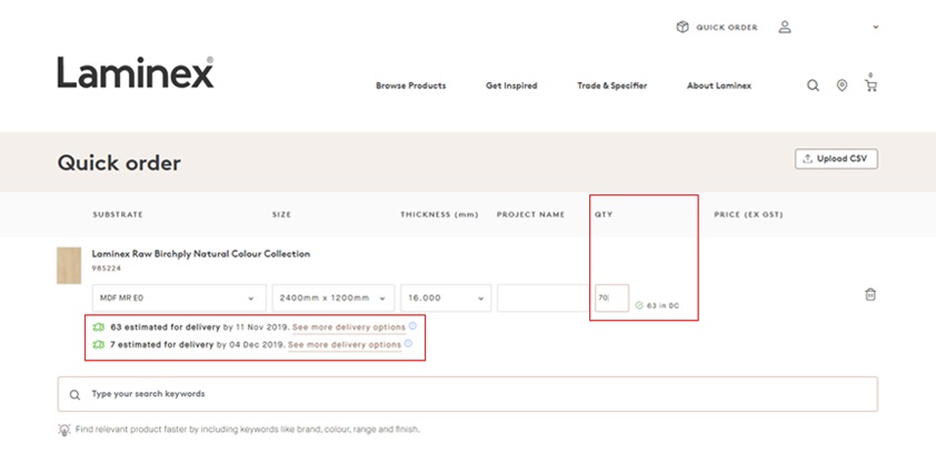 If you need to place an order for a future delivery date, you can now do so with Forward Ordering. Once you've selected the product you want, simply enter the quantity you're after, select "see more delivery options" and you can nominate a future delivery or dispatch date. This functionality means you can better plan your projects and receive deliveries at a time that best suits you.